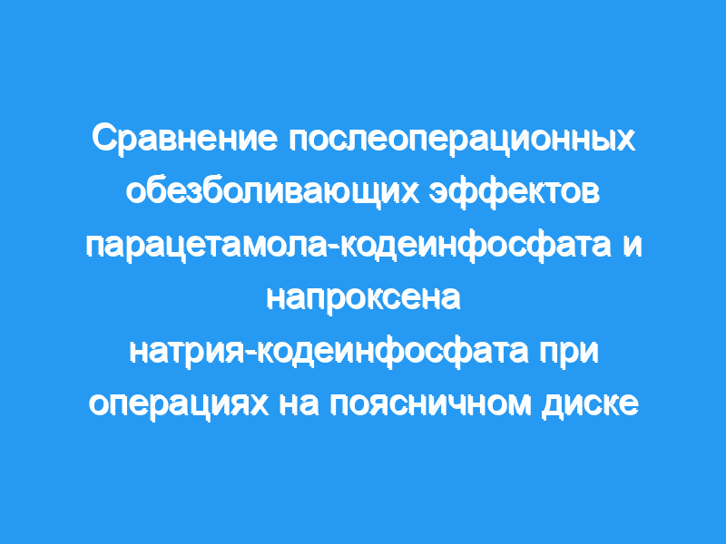 Целью данного исследования было сравнение эффективности парацетамола-кодеинфосфата и напроксена натрия-кодеинфосфата в отношении послеоперационной боли и потребления трамадола в течение первых 24 часов после операции на поясничном диске.