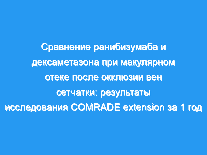 В это открытое исследование IV фазы были проспективно включены пациенты, завершившие основные исследования COMRADE. В целом, было пролечено 92 пациента с ветвями РВО (BRVO) (ранибизумаб 52, DEX 40) и 83 пациента с центральным РВО (CRVO) (ранибизумаб 61, DEX 22), и 94,6% пациентов с BRVO и 97,6% пациентов с CRVO завершили расширенное исследование. Пациенты были отнесены к той же группе лечения, что и в основных исследованиях. Пациенты находились под ежемесячным наблюдением и получали либо 0,5 мг ранибизумаба, либо имплантат DEX в дозе 0,7 мг по мере необходимости.