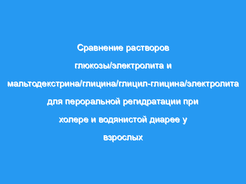 Сто восемь взрослых мужчин (средний возраст 33 +/- 1.7 лет) с водянистой диареей продолжительностью менее 48 часов в домашних условиях до госпитализации и с клинически выраженным (II степень, тяжелая) обезвоживанием были допущены к рандомизированному двойному слепому клиническому исследованию, 54 лечились с стандартный раствор для пероральной регидратации (ОРС) — препарат ВОЗ, содержащий цитрат — и 54 с улучшенным составом ОРС, который содержал, в дополнение к стандартной формуле, 20 г мальтодекстрина (вместо глюкозы), 4 г глицина и 4 г глицил-глицина.