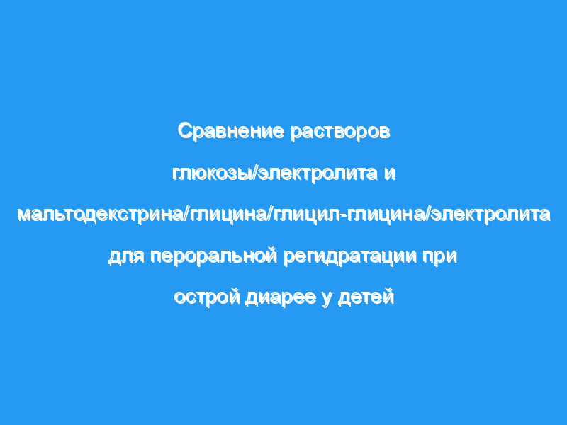 Пятьдесят один ребенок получал стандартный раствор для пероральной регидратации (ORS) (препарат Всемирной организации здравоохранения [ВОЗ], содержащий цитрат) и 50 обработали улучшенным препаратом ORS (содержащим, в дополнение к стандартной формуле, 20 г мальтодекстрина вместо глюкозы и 4 г глицина и 4 г глицил-глицина). Никому не давали антибиотик.