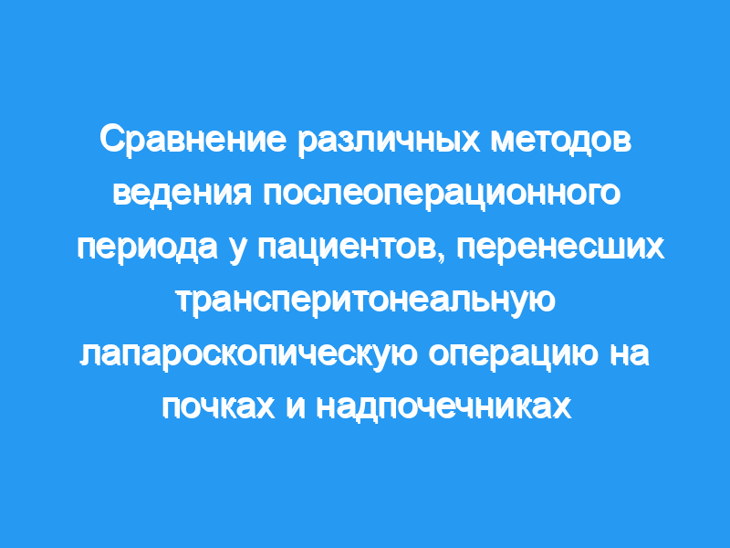 Мы сравнили влияние местной инфильтрации левобупивакаином, внутривенного введения парацетамола, внутривенного введения лорноксикама на послеоперационную анальгезию у пациентов, перенесших трансперитонеальную лапароскопическую операцию на почках и надпочечниках.