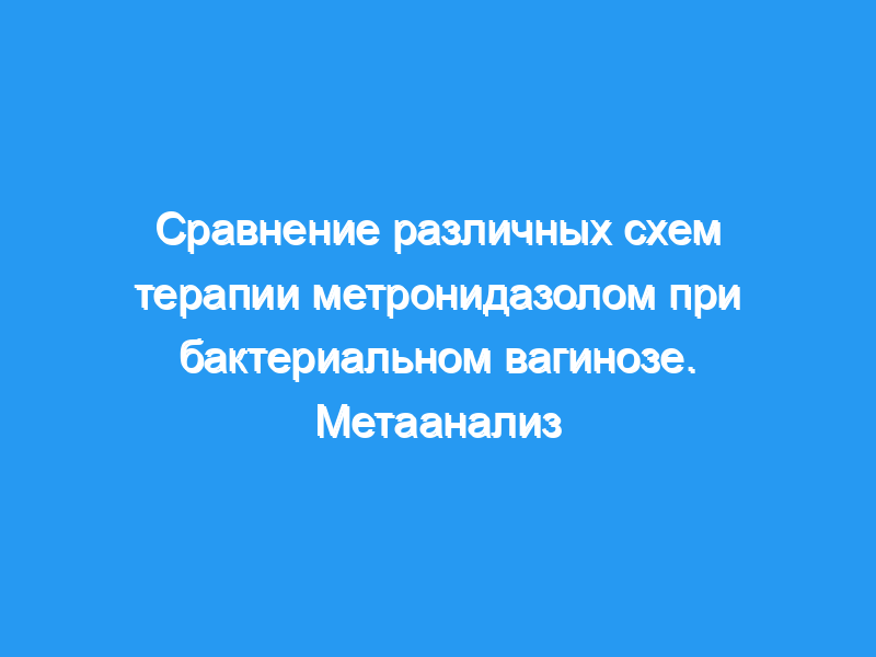 Оценить лечение бактериального вагиноза метронидазолом, чтобы определить, существует ли терапевтический режим, который превосходит все другие в отношении излечения и частоты рецидивов. Источники данных: Поиск литературы с помощью компьютера, обзор индекса медицинских предметов и ссылки, приведенные в определенных статьях. Выбор исследования: Клинические испытания, сравнивающие различные схемы приема метронидазола внутрь, в которых были описаны диагностические критерии бактериального вагиноза и критерии определения излечения от лечения. Извлечение данных: Статьи, которые соответствовали критериям включения, были критически оценены, а те, которые прошли отбор, были включены в анализ. Из 52 первоначальных статей 10 соответствовали критериям включения и прошли критическую оценку. Обобщение данных: Пациенты были разделены на группы в соответствии с продолжительностью получаемой терапии: группа A (n = 413), разовая доза 2 г, группа B (n = 193), разовая суточная доза 2 г в течение 2 дней, группа C (n = 317), 5 дней и группа D (n = 280), 7 дней. Показатели излечения при первоначальной оценке для групп составили 85%, 87%, 86% и 87% соответственно. Анализ таблицы непредвиденных обстоятельств chi 2 не показал существенной разницы в показателях излечения между группами (P = 0,78). Только 465 из этих пациентов были обследованы на предмет рецидива заболевания. Не было выявлено существенной разницы в показателях излечения после 4 недель терапии (P = .4).