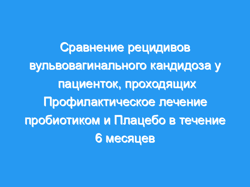 Это рандомизированное двойное слепое клиническое/сравнительное исследование, включающее рецидив вагинального кандидоза (ВВК) после первоначального лечения пероральным флуконазолом у пациентов, проходящих профилактическое лечение пробиотиком и плацебо в течение 6 месяцев.