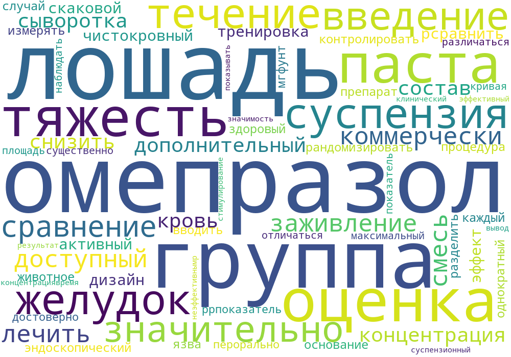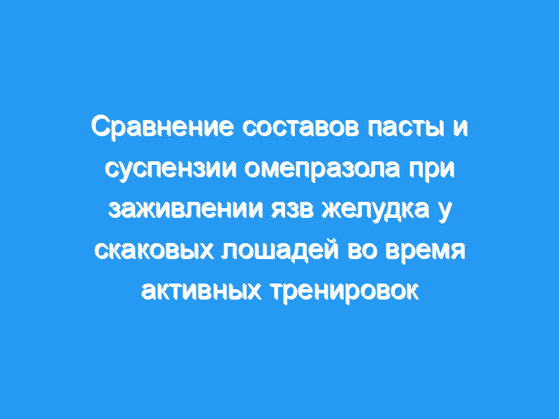 Показатели тяжести язвы на 0-й день достоверно не различались между группами. На 30-й день оценка тяжести язвы была значительно снижена по сравнению с оценкой 0-го дня у лошадей 2-й группы, но не у лошадей 1-й группы. На 60-й день оценка тяжести язвы была значительно снижена по сравнению с показателями 0-го и 30-го дней у лошадей 1-й группы. У лошадей 2-й группы оценка тяжести язвы на 60-й день была значительно ниже, чем оценка на 0-й день, но существенно не отличалась от оценки на 30-й день. Максимальная наблюдаемая концентрация омепразола в сыворотке крови и площадь под кривой концентрация-время были значительно выше после введения пасты по сравнению с суспензионным составом. Выводы и клиническая значимость: Результаты показывают, что, хотя введение коммерчески доступного состава омепразола в виде пасты было эффективным в стимулировании заживления язв желудка у этих лошадей, введение суспензии омепразола в виде смеси было неэффективным.