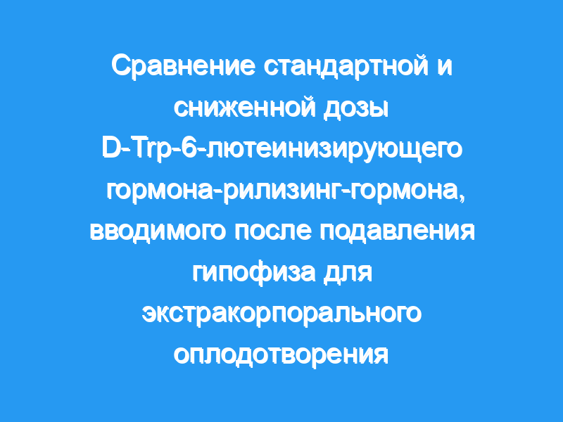 Было проведено рандомизированное проспективное исследование для сравнения низких и стандартных доз агониста лютеинизирующего гормона-рилизинг-гормона (LHRHa), используемых в комбинации с гонадотропинами при стимуляции яичников для экстракорпорального оплодотворения (ЭКО). В общей сложности 42 пациенткам с овуляцией и механическим бесплодием вводили 0,5 мг/сут LHRHa (Декапептил) с 21-го дня их циклов в течение 14 дней.