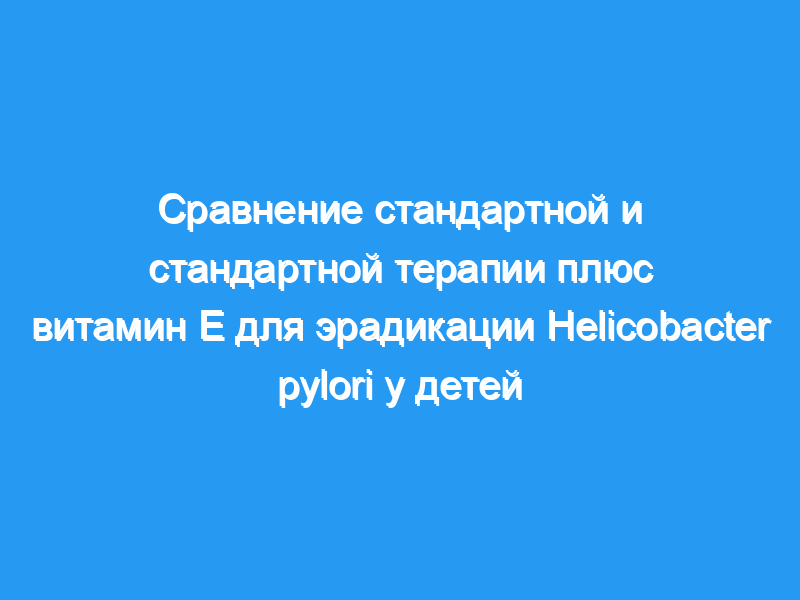 Хотя для эрадикации Helicobacter pylori у взрослых можно использовать различные препараты, у детей возможности лечения ограничены. Целью этого исследования было сравнить эффекты стандартного протокола лансопразола, амоксициллина и кларитромицина (LAC) с эффектами комбинации LAC+витамин Е (LACE) для эрадикации H. pylori.