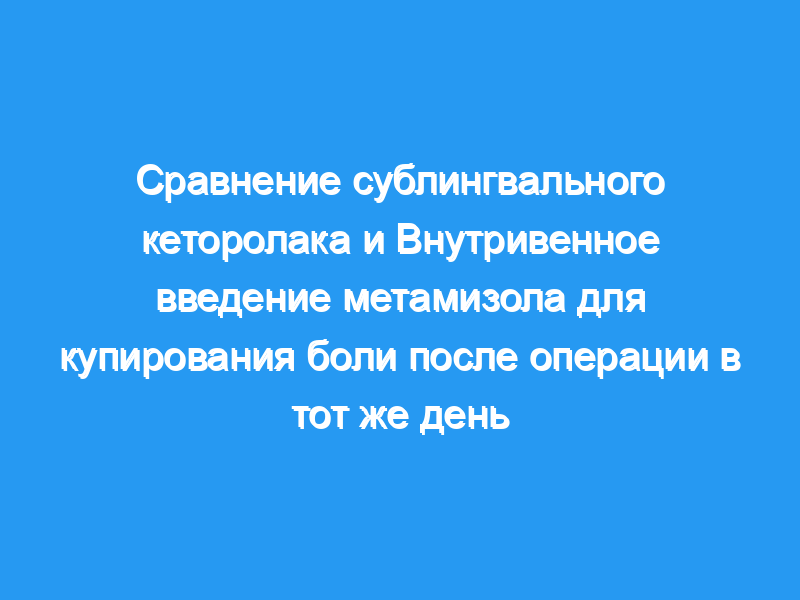 Терапевтическая боль является одним из наиболее важных показателей результата в хирургии. Сравнительные исследования эффективности кеторолака в амбулаторной хирургии, как правило, ограничивались внутривенным введением. Мы сравнили обезболивающую эффективность сублингвального кеторолака и метамизола при краткосрочной операции.