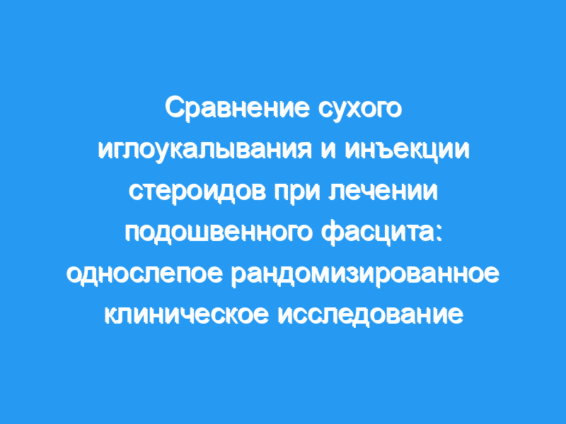 Подошвенный фасциит является распространенной причиной боли в пятке. Учитывая различные вмешательства, которые применяются у пациентов с подошвенным фасциитом, в последнее время в качестве нового метода лечения предлагается сухое иглоукалывание. Целью данного исследования является оценка эффективности сухого иглоукалывания по сравнению с инъекцией стероидов при подошвенном фасците.