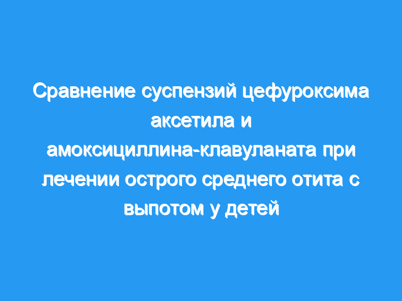 Двести шестьдесят три педиатрических пациента в возрасте от 3 месяцев до 11 лет были включены в рандомизированное, слепое многоцентровое исследование, в котором сравнивались клиническая и бактериологическая эффективность и безопасность суспензии цефуроксима аксетила (CAE) с суспензией амоксициллина-клавуланата (AMX-CL) в США. лечение острого среднего отита с выпотом.