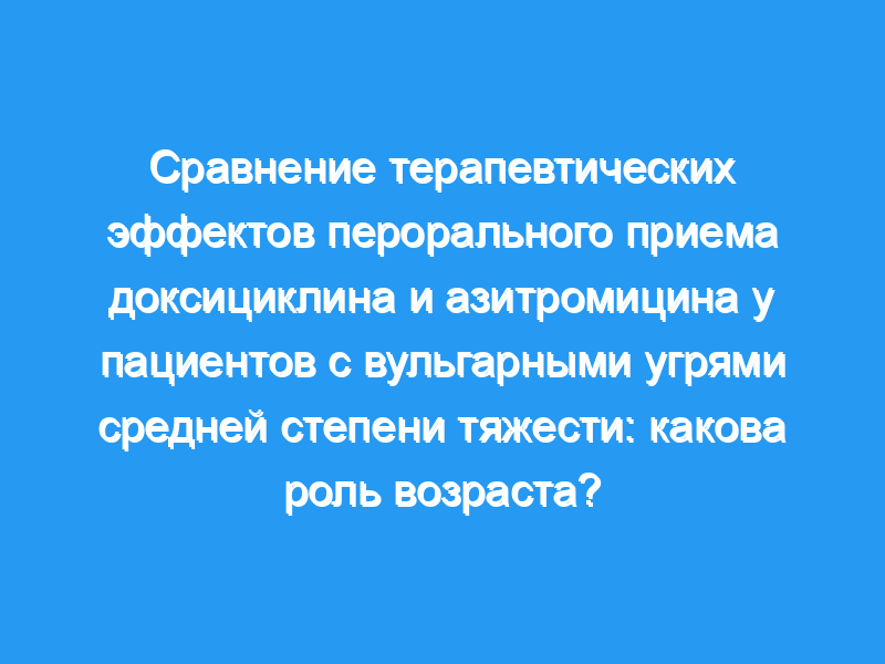 Целью данного исследования было сравнение эффективности и безопасности перорального приема азитромицина и доксициклина при лечении вульгарных угрей средней степени тяжести с учетом возраста пациентов в качестве влияющего параметра.