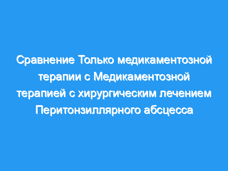 Цель Это исследование было проведено, чтобы определить, эквивалентна ли эффективность и безопасность медикаментозного лечения неосложненного перитонзиллярного абсцесса (ПТА) в отделении неотложной помощи медикаментозной плюс хирургической терапии.