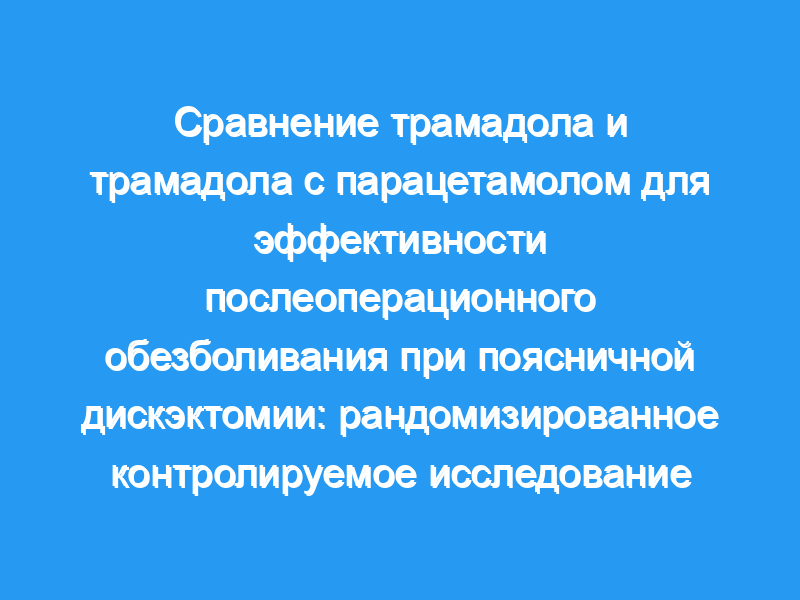 Несмотря на достижения в лечении боли, доступность новых лекарств или расширение знаний о обезболивании, послеоперационный контроль боли после различных операций остается недостаточным. Мы стремились сравнить послеоперационную обезболивающую эффективность трамадола по сравнению с трамадолом с парацетамолом после поясничной дискэктомии. Дизайн, обстановка, участники: Шестьдесят пациентов, перенесших поясничную дискэктомию, были случайным образом распределены на две группы.