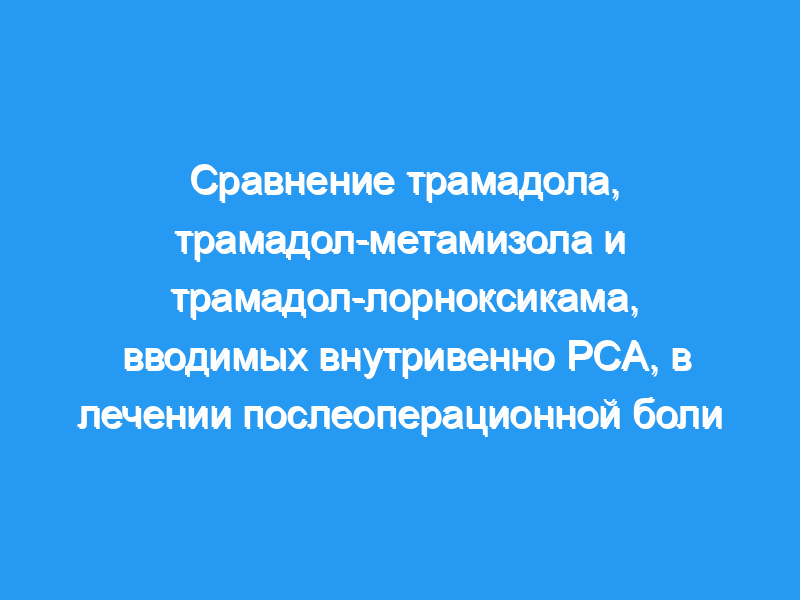 Сравнение трамадола, трамадол-метамизола и трамадол-лорноксикама, вводимых внутривенно PCA при лечении послеоперационного pai.