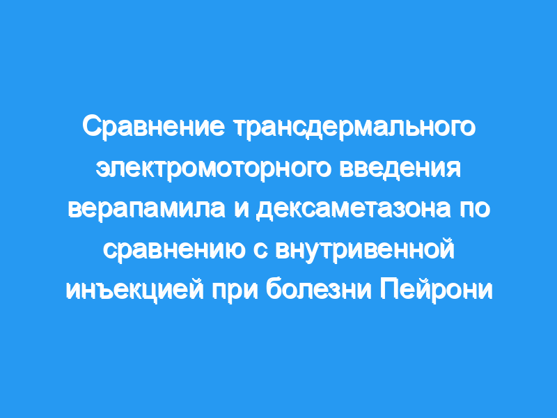 Пациенты с болезнью Пейрони продолжительностью менее 2 лет были рандомизированы на две группы для трансдермального электромоторного введения и внутрипузырного введения верапамила плюс дексаметазона.