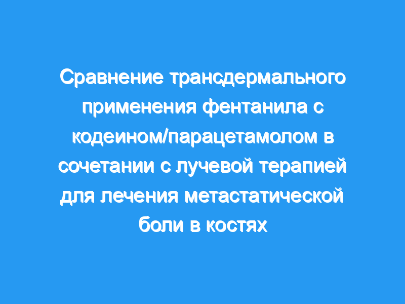 Это исследование было разработано для оценки результатов лечения боли и показателей качества жизни (QoL) у онкологических больных с метастатическими боли в костях, получающих комбинацию R/T и трансдермальных терапевтических пластырей с фентанилом (TTS-F) или кодеином/парацетамолом.