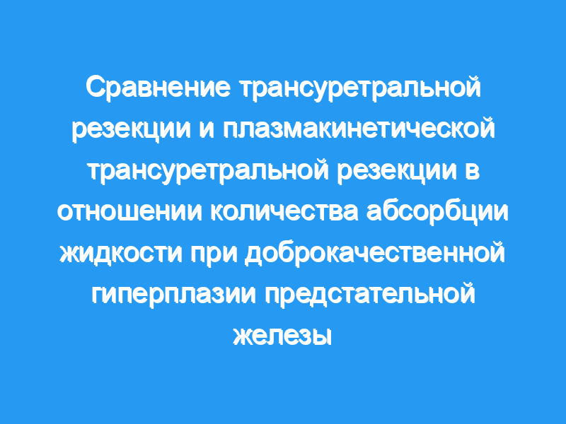 Не было никакой разницы в возрасте, объеме простаты и продолжительность рабочего времени в любой группе. В обеих группах расчетный объем поглощенной жидкости увеличивался с увеличением продолжительности операции (p <, 0,05). Разница между средним поглощением жидкости во время PK-TURP и во время TURP была статистически значимой (p <, 0,01).