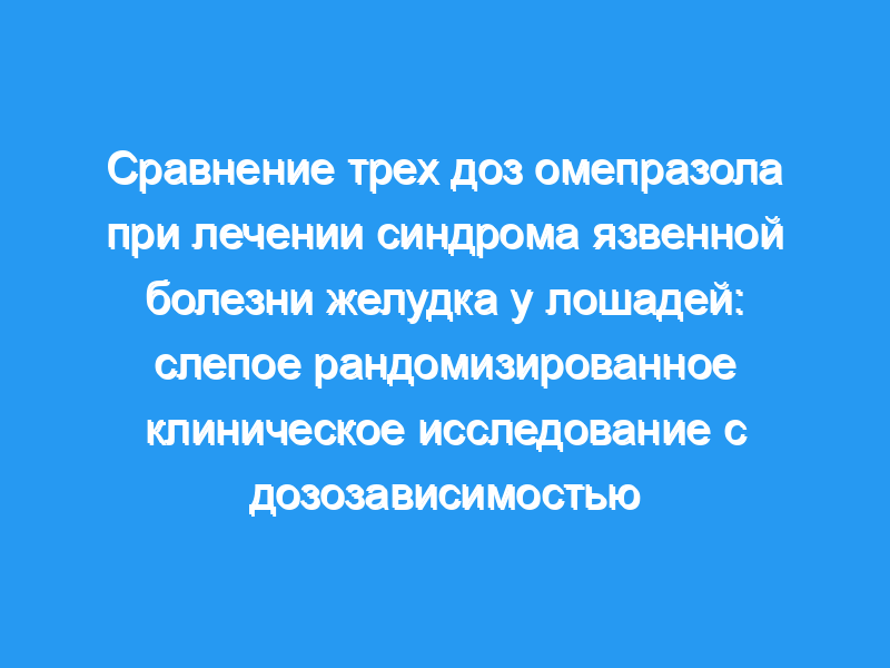 Причины проведения исследования: Предыдущее исследование продемонстрировало, что эффект дозы от 1,6 до 4,0 мг/кг массы тела омепразола per os s.i.d. присутствует при лечении язвенной болезни желудка у лошадей. В том же исследовании заживление железистых изъязвлений оказалось хуже, чем заживление плоскоклеточных изъязвлений. Тем не менее, в этом исследовании были выявлены некоторые ограничения, и требуется дальнейшее расследование.