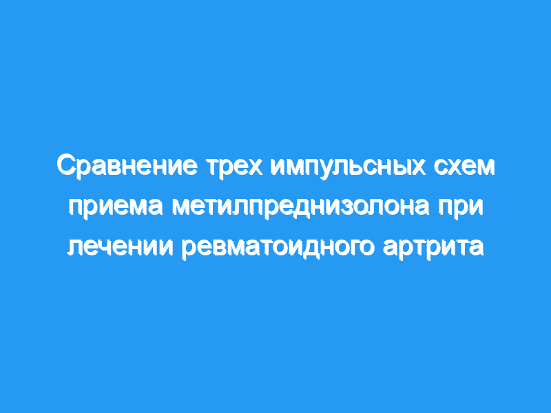Двадцать девять пациентов с активным ревматоидным артритом приняли участие в 6-недельном параллельном рандомизированном двойном слепом исследовании, в котором сравнивались 1000 мг внутривенного метилпреднизолона (МП), 320 мг внутривенного МП и 320 мг внутримышечного МП. Хотя клиническая польза была отмечена во всех группах, не было различий между группами по продолжительности пользы (дни: 1000 мг внутривенно: 23,4, 320 мг внутримышечно: 17,2, 320 мг внутривенно: 21,9) (р = 0,72), глобальной шкале пациентов (р = 0,57) или глобальной шкале MD (р = 0,36). Способность определить 33%-ную разницу между группами по чувствительности суставов и глобальной шкале пациентов составила 0,64 и 0,78. Серьезной токсичности, связанной с приемом лекарств, не наблюдается.