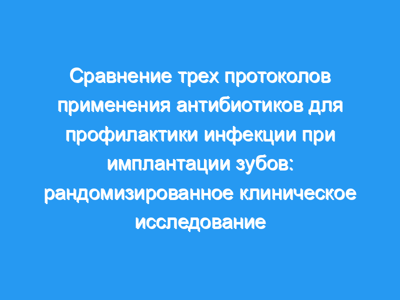 Исследование состояло из трех групп, 1-я группа получала однократную антибиотикопрофилактику перорально (2 г амоксициллина за 1 ч до операции). 2-я группа получала одну дозу профилактического антибиотика (2 г амоксициллина за 1 ч до операции) с дополнительными дозами после операции (500 мг амоксициллина, q8h в течение 5 дней). 3-я группа получала только послеоперационные антибиотики (500 мг амоксициллина, q8h в течение 5 дней). В исследование было включено 450 пациентов.