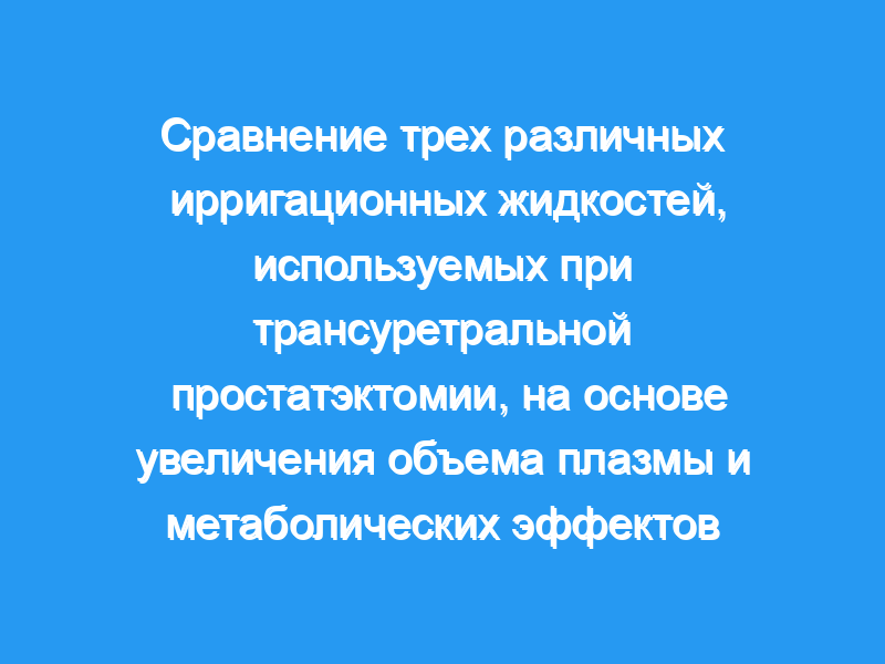 Изучить изменения в патофизиологии синдрома трансуретральной резекции (ТУР) с использованием различных ирригационных жидкостей. Пациенты и методы: Во время трансуретральной простатэктомии (ТУРП) сравнивали три различные жидкости для орошения (5% маннитола у 21 пациента, группа А, 1,5% глицина у 18 пациентов, группа В, и жидкость, содержащую 2,7% сорбита и 0,54% маннитола у 20 пациентов, группа С), оценивая увеличение объема плазмы., рассчитанный с использованием метода разведения гематокрита, и несколько биохимических переменных.