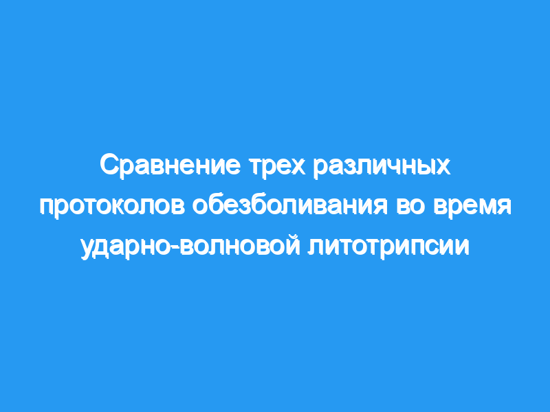 Предпосылки и цель: Ударно-волновая литотрипсия (SWL) является одним из наиболее важных методов лечения мочекаменной болезни. Процедура может вызвать боль, и расслабление и сотрудничество пациента имеют решающее значение для поддержания локализации камня для оптимальной фрагментации и комфорта пациента во время процедуры. До сих пор не существует стандартного протокола обезболивания для пациентов, перенесших SWL. В этом исследовании мы намеревались использовать три различных анальгетика и сравнить их эффективность во время SWL. Пациенты и методы: Письменное информированное согласие было получено от 95 пациентов с камнями в почках, и они были рандомизированы для получения лорноксикама (группа L, n=32 пациента), парацетамола (группа P, n=31 пациент) и трамадола с помощью устройства для обезболивания, контролируемого пациентом (группа T, n=32 пациентов). Все группы получали контролируемую пациентом анальгезию трамадолом во время процедуры SWL. Интенсивность боли оценивали с помощью визуальной аналоговой шкалы (ВАШ).