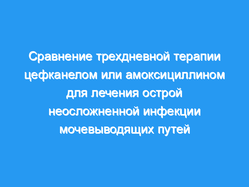 Эти данные свидетельствуют о том, что цефканел далоксат и амоксициллин сопоставимы по эффективности и побочным эффектам при 3-дневной терапии острой неосложненной инфекции мочевыводящих путей.