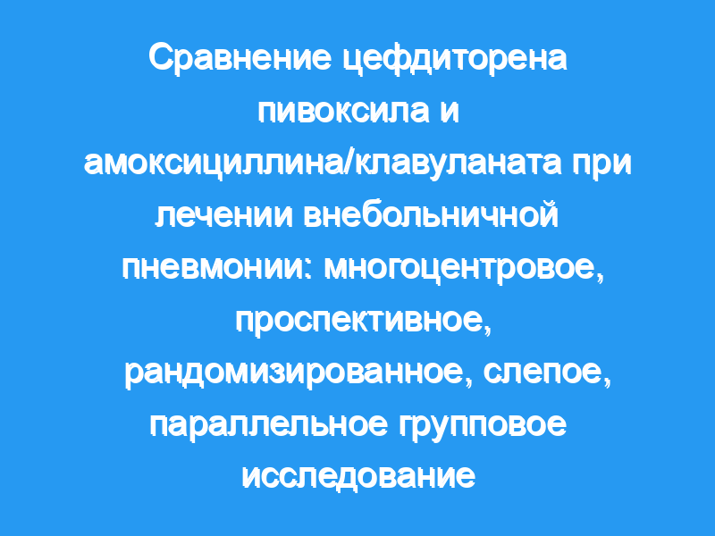 Это исследование было проведено с целью изучения эффективности и переносимости цефдиторена при лечении внебольничной пневмонии (ВП). Амоксициллин/клавуланат был выбран в качестве средства сравнения из-за его доказанной эффективности и общего признания в качестве стандарта лечения в CAP.