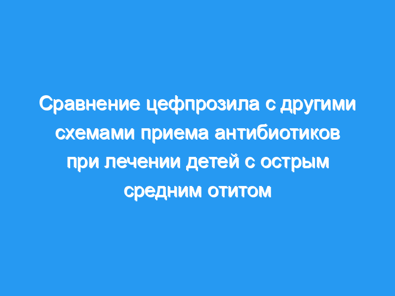 Мы заключаем, что терапия цефпрозилом при отите среда у детей вызывает клинические и бактериологические реакции, аналогичные тем, которые наблюдаются при применении амоксициллина/клавуланата, цефиксима или цефакло.