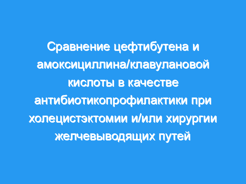 Сто пациентов, перенесших холецистэктомию или исследование желчевыводящих путей, были случайным образом распределены на один из следующих режимов приема антибиотиков: стандартный режим трех доз амоксициллина/клавулановой кислоты (1000/200 мг), вводимых внутривенно, или однократная доза цефтибутена (400 мг), вводимая перорально.