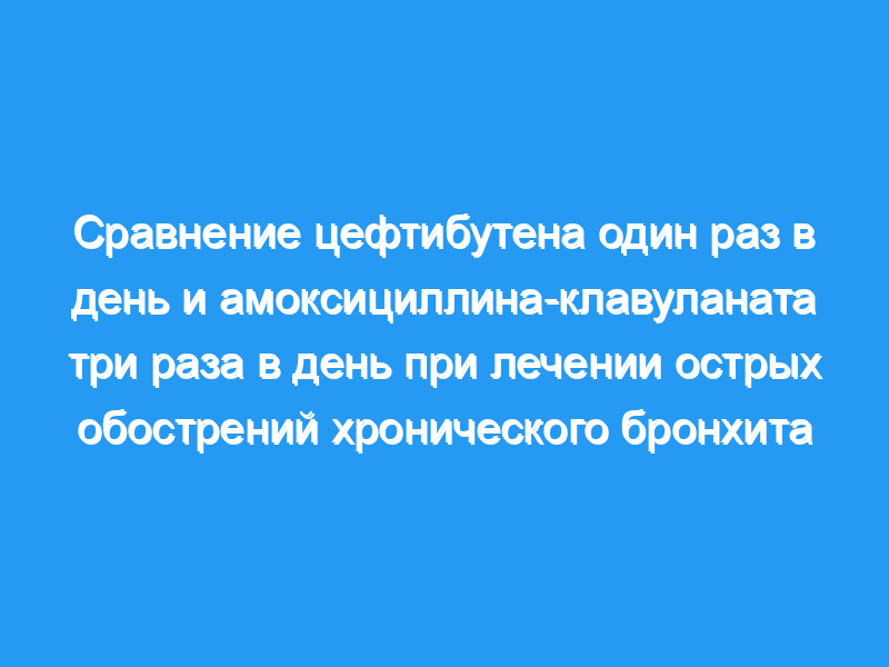 В заключение, 400 мг цефтибутена перорально один раз в день имеет аналогичный клинический успех, чем 500 мг амоксициллина-клавуланата три раза в день, с тенденцией к уменьшению побочных эффектов со стороны желудочно-кишечного тракта при лечении. пациентов с AECB.