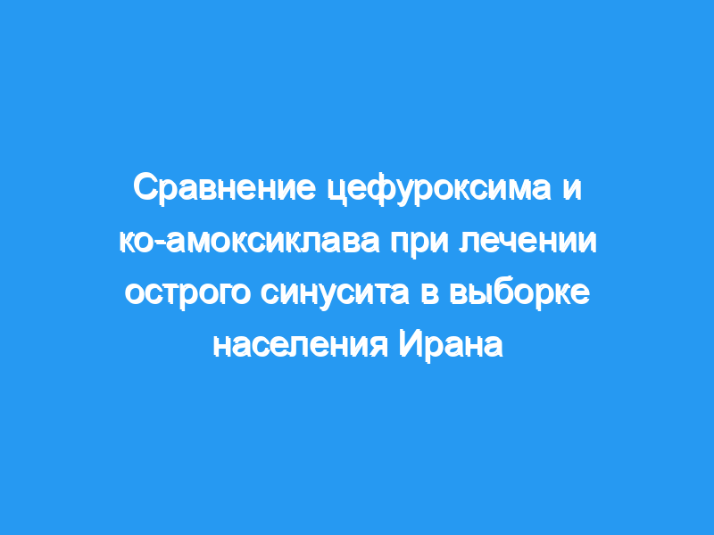 Острый синусит — распространенная инфекция верхних дыхательных путей во всем мире, которая может серьезно осложниться при неправильном лечении. Целью данного исследования была оценка и сравнение эффективности цефуроксима и ко-амоксиклава при лечении острого синусита в иранской выборке населения.
