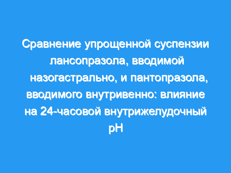 Для сравнения 24-часового внутрижелудочного pH-эффекта упрощенной суспензии лансопразола в дозе 30 мг, вводимой назогастрально, с пантопразолом в дозе 40 мг, вводимым внутривенно.