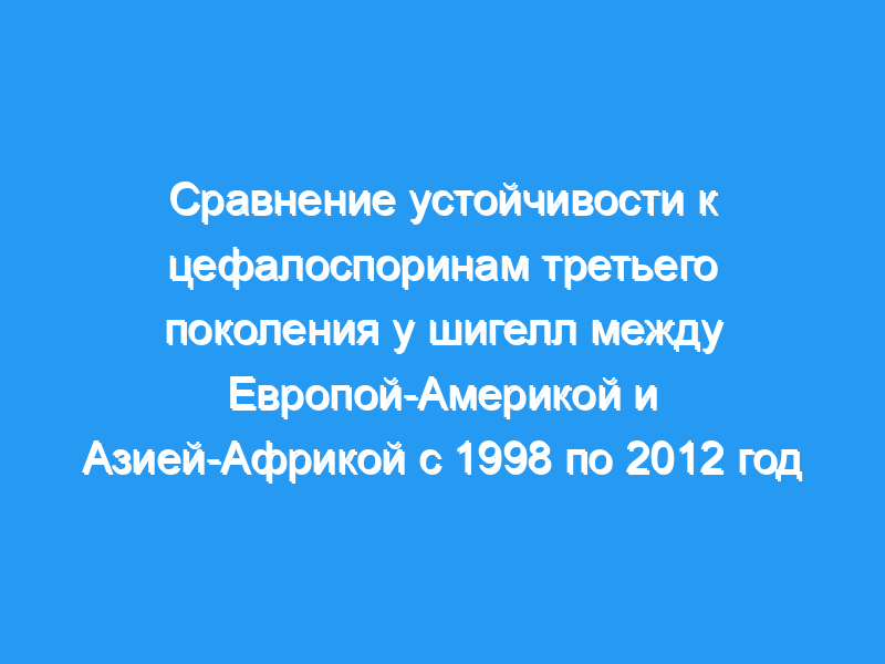 В Азиатско-Африканском регионе распространенность устойчивости к общее количество и различные подтипы к цефтриаксону, цефотаксиму и цефтазидиму заметно увеличились, с общей распространенностью резистентности до 14,2% [95% доверительный интервал (ДИ) 3·9-29·4], 22·6% (95% КИ 4·8-48·6 ) и 6·2% (95% ДИ 3·8-9·1 ) в течение 2010-2012 годов соответственно.