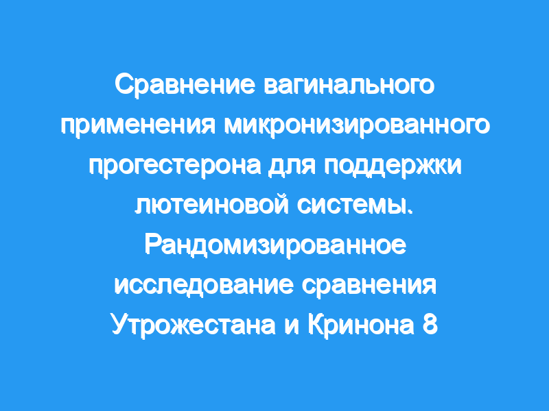 Исследование было сосредоточено на сравнении эффективности, безопасности и переносимости вагинального применения микронизированного прогестерона в препаратах Утрогестан и Кринон 8%. Дизайн: Проспективное рандомизированное исследование.
