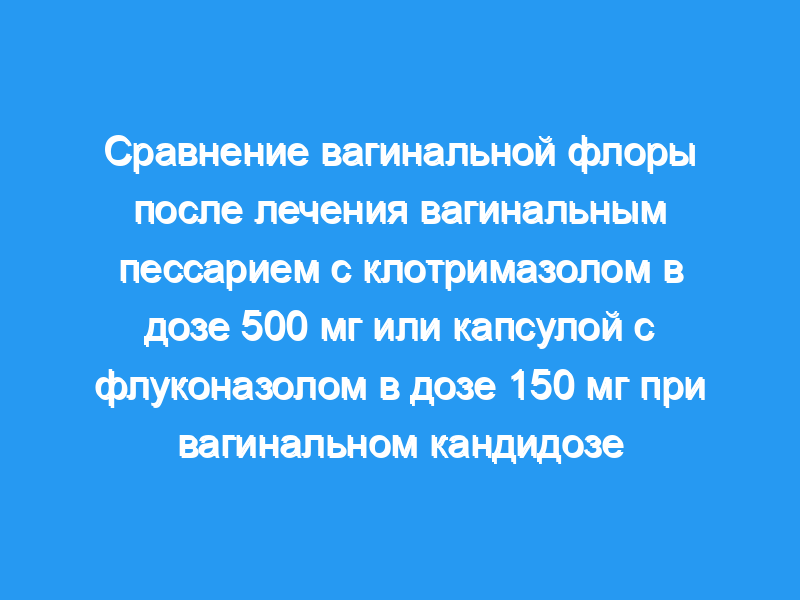 Они были случайным образом распределены для получения либо вагинального пессария с клотримазолом в дозе 500 мг, либо капсулы с флуконазолом в дозе 150 мг.
