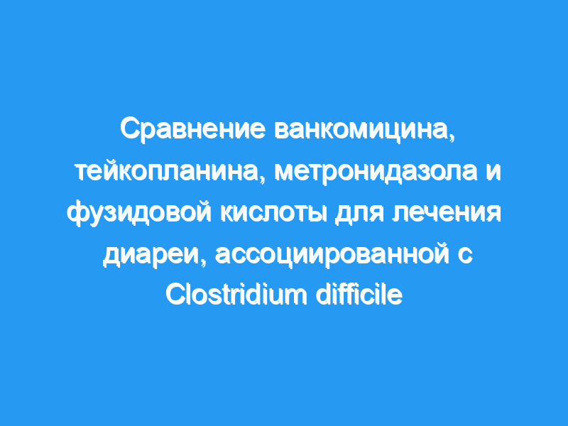 Мы провели проспективное рандомизированное исследование для сравнения эффективности перорального приема фузидовой кислоты, перорального приема метронидазола, перорального приема ванкомицина и перорального приема тейкопланина для лечения диареи, ассоциированной с Clostridium difficile.