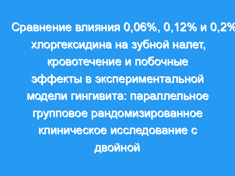 Хлоргексидин является золотым стандартом профилактики зубного налета. Целью настоящего исследования было сравнить ингибирующий эффект налета и гингивита коммерческих продуктов, содержащих 0,2%, 0,12% и 0,06% хлоргексидина, в модифицированной экспериментальной модели гингивита.