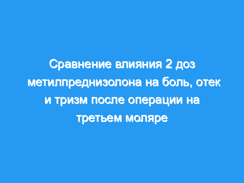 Целью данного исследования было сравнить влияние внутривенного введения 1,5 мг/кг и 3 мг/кг метилпреднизолона натрия сукцината (MP) на боль, отек и тризм после операции на третьем моляре. План исследования: Двадцать шесть здоровых пациентов с симметрично пораженными третьими молярами нижней челюсти были включены в это двойное слепое перекрестное исследование. Либо 1,5 мг/кг, либо 3 мг/кг МП вводили внутривенно за час до первой операции. При второй операции была применена другая доза. Тризм определяли путем измерения максимального межзубного отверстия, а отек лица оценивали с помощью метода измерения с помощью ленты. Боль определяли с помощью визуальной аналоговой шкалы и регистрировали количество принятых обезболивающих таблеток.