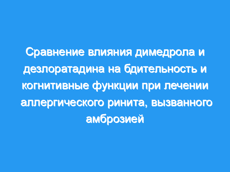 Дезлоратадин улучшал симптомы аллергического ринита, вызванного амброзией, без отрицательного влияния на производительность. Димедрол улучшал симптомы аллергического ринита, но вызывал значительное снижение бдительности и когнитивных функций. Таким образом, эффективность антигистаминного лечения должна быть сбалансирована с сопутствующим воздействием на функционирование ЦНС.