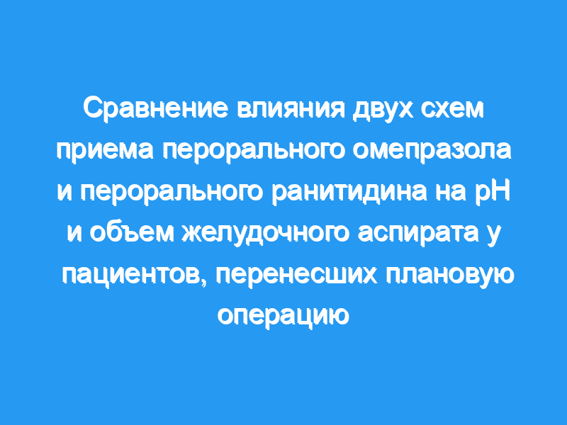 Мы сравнили рН и объем желудочного аспирата при введении анестезии у 222 пациентов, которые получали либо омепразол, либо ранитидин перед плановой операцией.