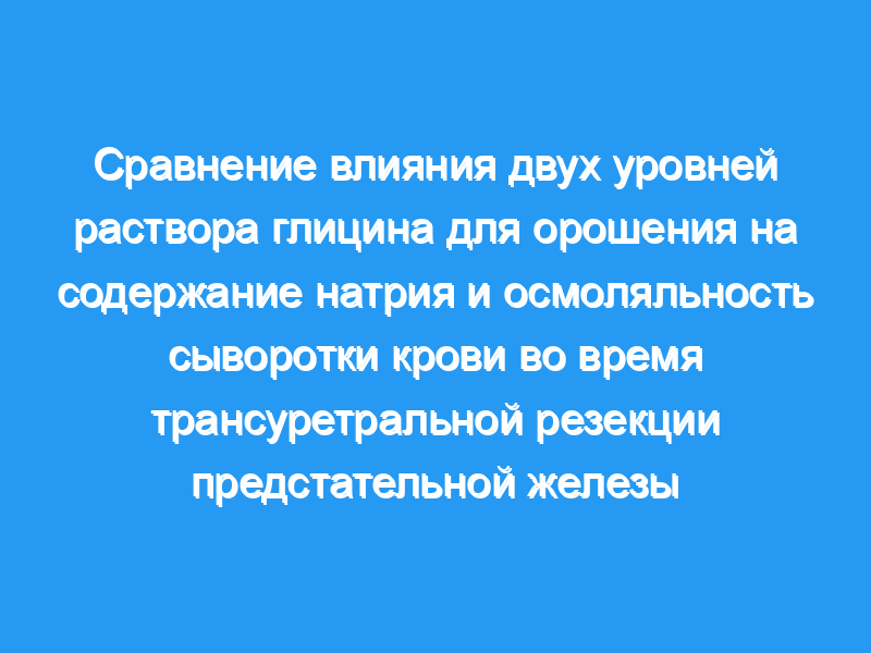 Влияние высоты 1,5% раствора глицина для орошения во время ТУРП с прерывистым потоком на содержание натрия и осмоляльность сыворотки крови было изучено в периоперационном периоде у 40 пациентов. Высота глицина была установлена на уровне 70 (n = 20) или 150 (n = 20) см над операционным столом.