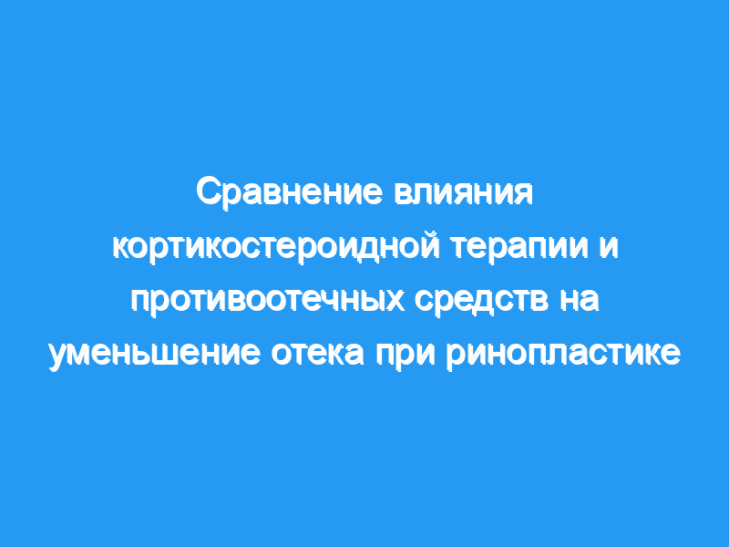 Сравнение двух методов противоотечного и трех доз дексаметазона по уменьшению отека и экхимоза после септоринопластики. Семьдесят четыре пациента, которые были кандидатами на ринопластику, были случайным образом разделены на три группы. Группа А получала 8 мг дексаметазона внутривенно до операции и повторно через 24 и 48 часов после операции, группа В получала три таблетки псевдоэфедрина (60 мг) в день в течение 1 недели, а группа С получала три таблетки псевдоэфедрина (60 мг) в день в течение 2 недель. Наконец, было оценено их влияние на глаз, кончик и спинной отек, а также экхимоз.