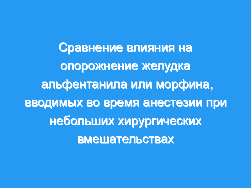 В результаты показали, что морфин вызывал большую задержку опорожнения желудка по сравнению с альфентанилом (p <, 0,05). Наблюдаемый эффект на скорость опорожнения желудка может потенциально влиять на риск периоперационной регургитации и аспирации.