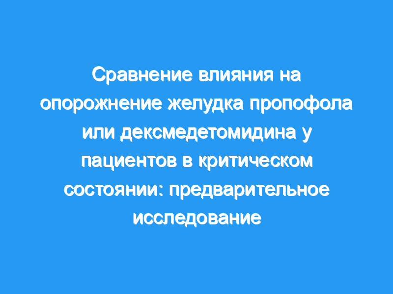 Пропофол и дексмедетомидин широко используются для седации в отделениях интенсивной терапии, однако имеются ограниченные данные о их влиянии на перистальтику желудка. В нашем предварительном исследовании мы изучили, сохраняется ли какое-либо влияние пропофола и дексмедетомидина на опорожнение желудка у пациентов в критическом состоянии.