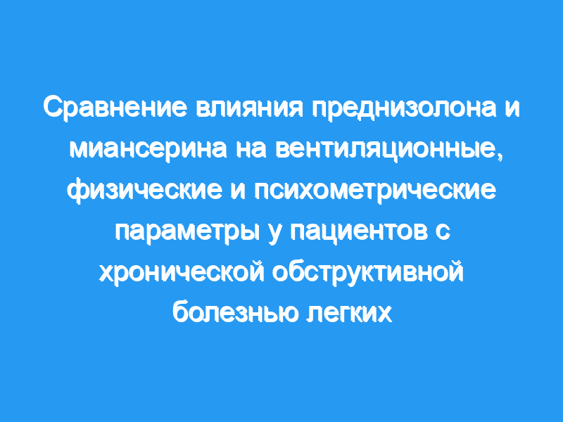 Улучшения показателей вентиляции легких, физической нагрузки и тревожности после лечения преднизолоном не воспроизводились миансерином, предполагая, что эффекты преднизолона при ХОБЛ вряд ли связаны с изменениями настроения.< / p>