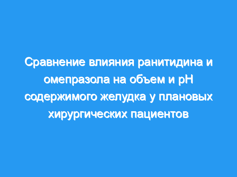 В случаях аспирации содержимого желудка риск пневмонита зависит от рН и объема содержимого желудка. Омепразол и рантидин уменьшают объем желудка и повышают рН желудка. Мы оценили эффективность предоперационного введения омепразола (60 мг) или ранитидина (150 мг) в профилактике аспирационного пневмонита.