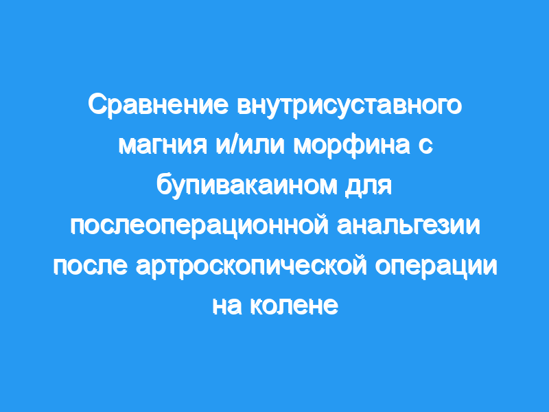 Внутрисуставное введение сульфата магния или морфина с бупивакаином оказывало сопоставимый обезболивающий эффект в используемых дозах. Их комбинация обеспечивала более эффективную послеоперационную анальгезию, чем любой из препаратов по отдельности.