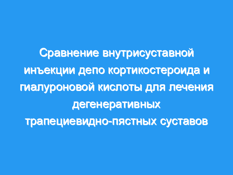 В обеих группах внутрисуставная инъекция привела к облегчению боли через 1 месяц. Сила захвата значительно улучшилась в группе, получавшей стероид в течение всего периода оценки. Пациенты, получавшие гиалуронат, показали улучшение силы захвата через 6 месяцев, а также в щипке и ППТ через 3 месяца.