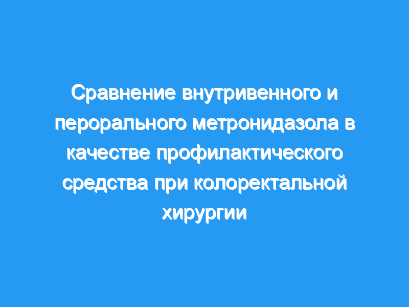 У шести из 46 пациентов в пероральной группе (13%) после операции была раневая инфекция по сравнению с 5 из 51 пациента, получавших внутривенный метронидазол (9,8%). Эти результаты свидетельствуют о том, что нет существенной разницы в том, вводится ли метронидазол внутривенно или перорально в качестве профилактического средства при плановой операции на толстой кишке.