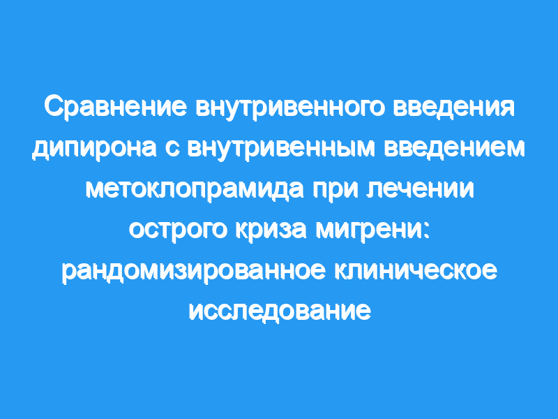[исправлено] Сравнить обезболивающий эффект дипирона с метоклопрамидом в облегчении боли. Метод: Мы провели пилотное рандомизированное исследование, сравнивающее внутривенное введение дипирона с внутривенным введением метоклопрамида у 27 пациентов с острым приступом мигрени. Первичной конечной точкой было сравнение снижения интенсивности боли до 2 часов, а также развития побочных эффектов.